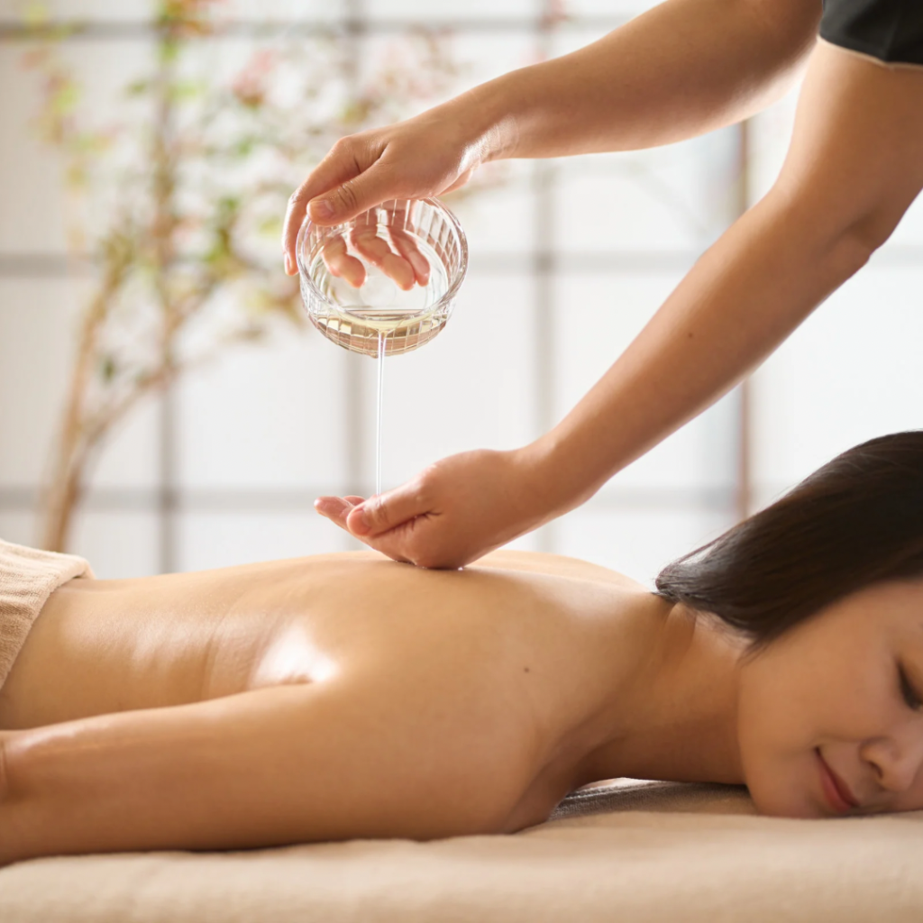 仙骨・尾骨へのタッチと香りの相乗効果で、自律神経が整い、心のざわつきまで静まっていきます。