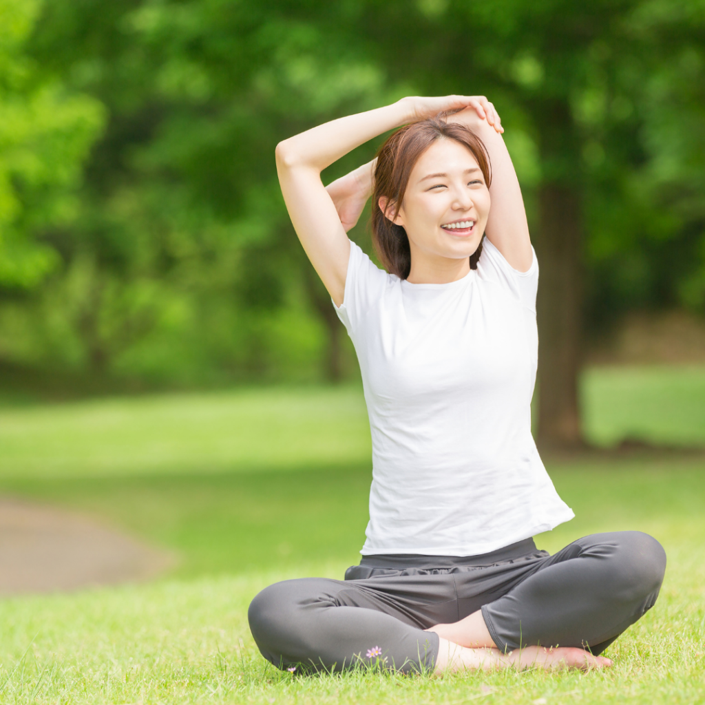 呼吸を意識しながら体を伸ばすだけでも、気持ちが落ち着きます。お風呂あがりに行うのが効果的です。