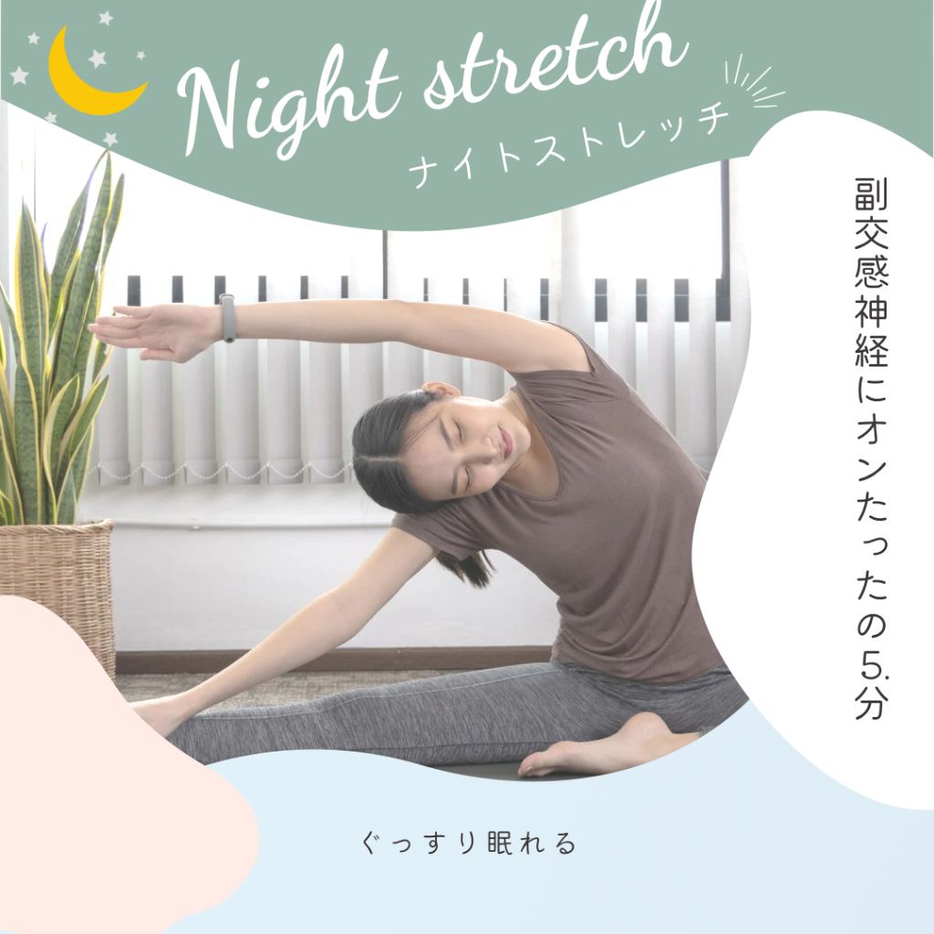 夜のストレッチが睡眠の質を高めるというのも、まさにこの作用のおかげ。回復の時間である“睡眠”の質を高める意味でも、ストレッチやケアは非常に大切です。